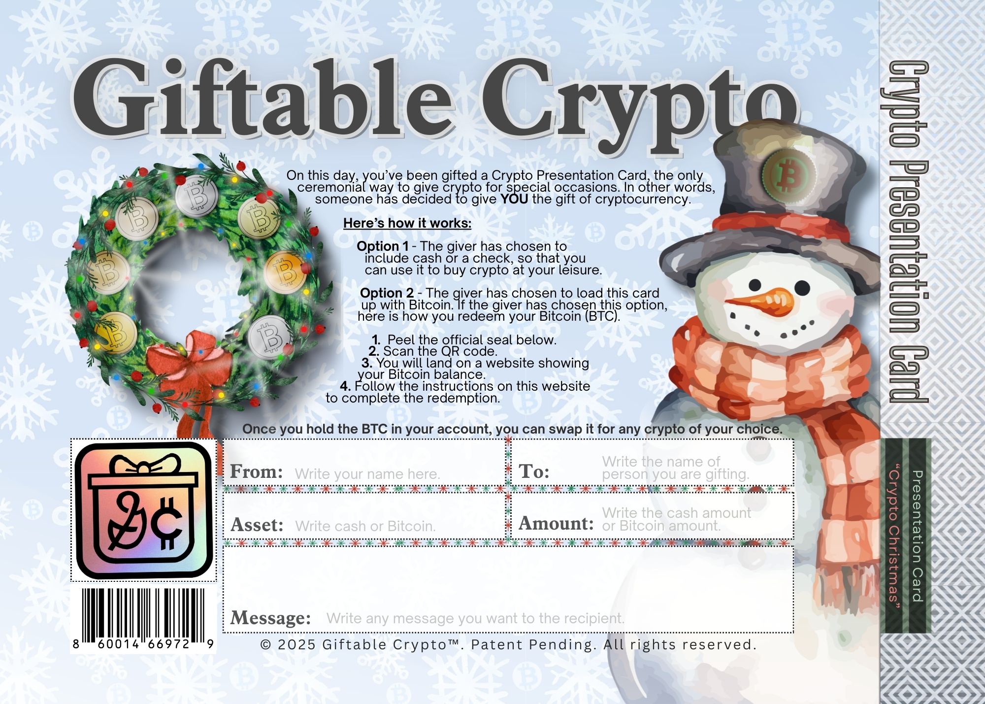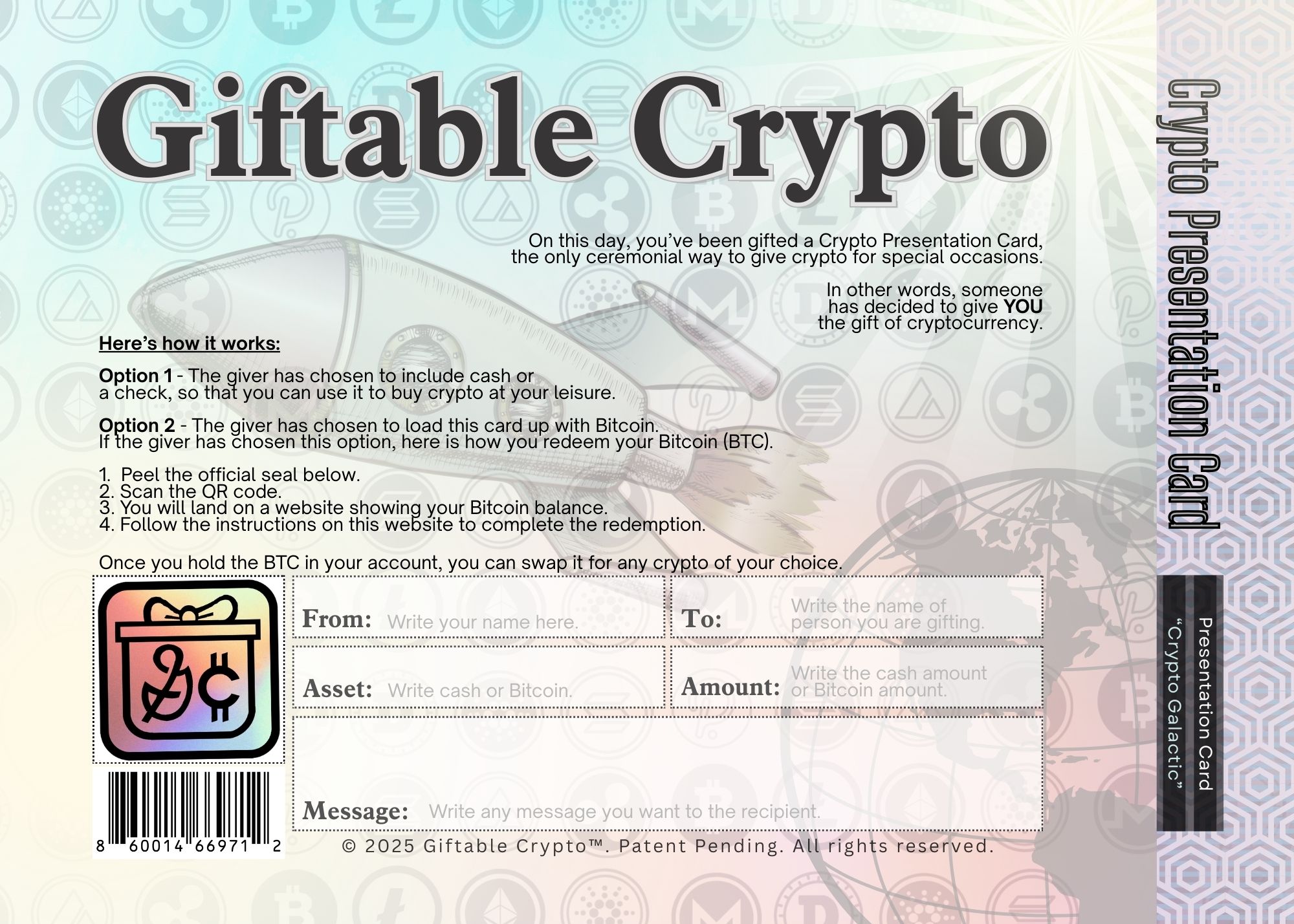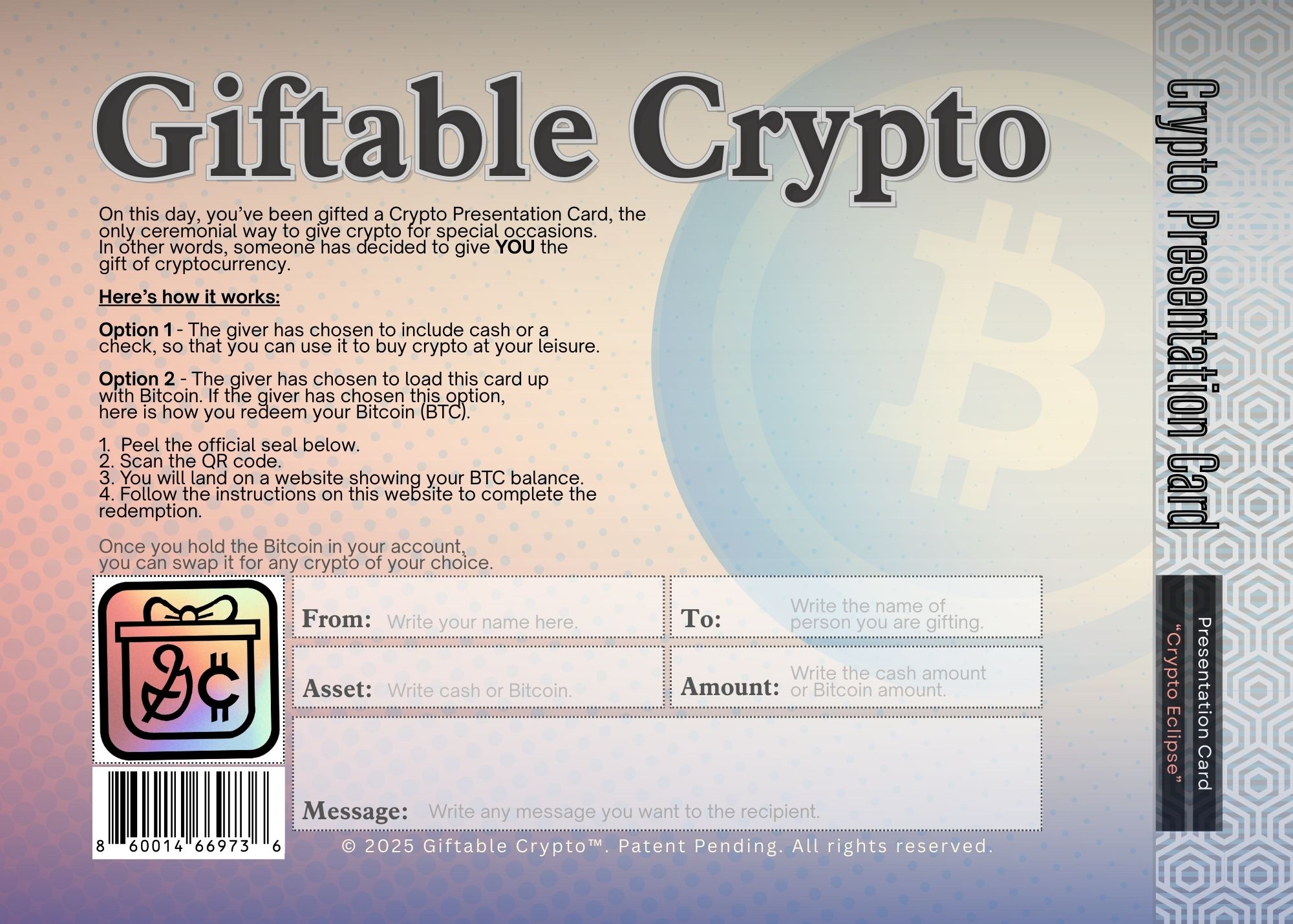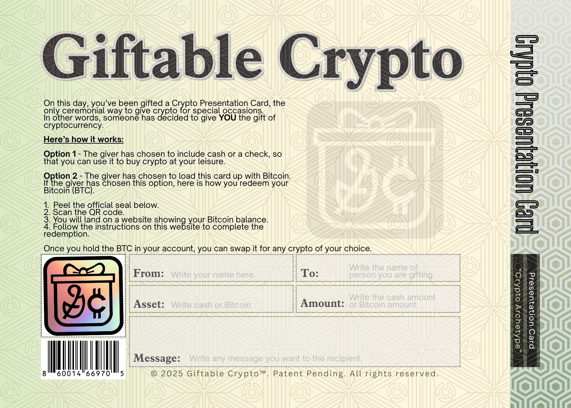 Premium presentation cards for simple, secure, memorable gifting.